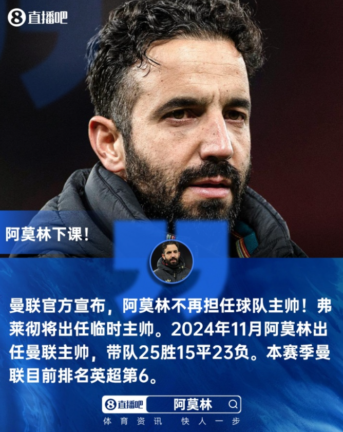 直播吧01月06日讯 在阿莫林从曼联下课之后,《泰晤士报》发文剖析其离任背后的深层原因,指出其多次在公开场合批评球队与球员,是其失去高层支持的关键之一。 据《泰晤士报》分析,实际上不少人并不认为阿莫